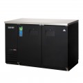 Back Bar Refrigerator, two-section, 49"W, 13.0 cu. ft. capacity, (420) 12 oz. can or (294) 12 oz. bottle capacity, self-contained side mounted refrigeration, stainless steel countertop, (2) solid hinged doors (locking), (4) epoxy coated wire shelves, digital controls with LED display, auto defrost, LED interior lighting with on/off switch, textured & laminated black vinyl exterior, galvanized steel interior wall & stainless steel floor, R290 Hydrocarbon refrigerant, 1/4 HP, 115v/60/1-ph, 3.5 amps, cord, NEMA 5-15P, NSF, cETLus, ETL-Sanitation, ENERGY STAR®