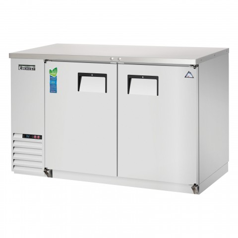 Back Bar Refrigerator, two-section, 49"W, 14.0 cu. ft. capacity, (490) 12 oz. can or (344) 12 oz. bottle capacity, (2) solid hinged doors (locking), snap-in magnetic door gasket, (4) epoxy coated adjustable wire shelves, digital controls with LED display, +33°F to +54°F temperature range, auto defrost, LED interior lighting with on/off switch, overheat protection alarm for compressor & condenser coil, stainless steel exterior & interior, self-contained side mounted refrigeration, R290 Hydrocarbon refrigerant, 1,557 BTU/hr, 1/4+ HP, 115v/60/1-ph, 3.5 amps, cord, NEMA 5-15P, NSF, cETLus, ETL-Sanitation