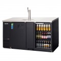 Back Bar & Direct Draw Keg Refrigerator Combo, two-section, 68"W, 20.0 cu. ft. capacity, self-contained side mounted refrigeration, (1) solid hinged & (1) glass hinged door (locking), holds (1) 1/2 barrel & (1) 1/4 barrel keg, (315) 12 oz. can or (210) 12 oz. bottle capacity, (2) epoxy coated wire shelves, (1) 3" diameter insulated stainless steel draft tower (NSF) with air distributor, single faucet, stainless steel countertop, digital controls with LED display, auto defrost, LED interior lighting with on/off switch, textured & laminated black vinyl exterior, galvanized steel interior wall & stainless steel floor, exterior drain port for excess top tray moisture, drain hose not included, floor drain required, R290 Hydrocarbon refrigerant, 1/4 HP, 115v/60/1-ph, 3.5 amps, cord, NEMA 5-15P, NSF, cETLus, ETL-Sanitation