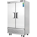 Reach-In Freezer, two-section, 39-3/8"W, 33.0 cu. ft. capacity, self-contained bottom mounted refrigeration, (2) narrow full-height solid hinged self-closing doors (locking), (6) epoxy coated wire shelves, height adjustable clips, digital controls with LED display, auto defrost, LED interior lighting, stainless steel interior, stainless steel front & sides, galvanized steel top, bottom & rear, (2) leg stabilizers, (4) 5" swivel casters (2 locking), 1 HP, 115v/60/1-ph, 7.94 amps, cord, NEMA 5-15P, NSF, cETLus, ETL-Sanitation