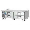 Chef Base Refrigerator, two-section, 72-3/8"W, self-contained side mounted refrigeration, (4) heavy duty stainless steel drawers, 1,084 lbs. weight capacity, 16 gauge stainless steel worktop, digital controls with LED display, auto defrost, dual air chamber & vents, high heat insulation, stainless steel grips, worktop security corner guards, stainless steel interior & exterior, galvanized steel bottom & rear, (3) leg stabilizers, (6) 5" swivel casters (3 locking), R290 Hydrocarbon refrigerant, 1/4 HP, 115v/60/1-ph, 3.5 amps, cord, NEMA 5-15P, NSF, cETLus, ETL-Sanitation