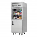 Reach-In Refrigerator, one-section, 29-1/4"W, 23.0 cu. ft. capacity, self-contained top mounted refrigeration, (1) glass hinged & (1) solid hinged self-closing half door (locking), (4) epoxy coated wire shelves, height adjustable clips, digital controls with LED display, air defrost, LED interior lighting with on/off switch, pressure relief port, stainless steel interior, stainless steel sides, galvanized steel top, bottom & rear, (2) leg stabilizers, (4) 5" swivel casters (2 locking), R290 Hydrocarbon refrigerant, 1/4 HP, 115v/60/1-ph, 3.3 amps, cord, NEMA 5-15P, NSF, cETLus, ETL-Sanitation
