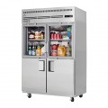 Reach-In Refrigerator, two-section, 49-5/8"W, 48.0 cu. ft. capacity, self-contained top mounted refrigeration, (2) glass hinged & (2) solid hinged self-closing half doors (locking), (8) epoxy coated wire shelves, height adjustable clips, digital controls with LED display, air defrost, LED interior lighting with on/off switch, pressure relief port, stainless steel interior, stainless steel sides, galvanized steel top, bottom & rear, (4) 5" swivel casters (2 locking), R290 Hydrocarbon refrigerant, 1/3 HP, 115v/60/1-ph, 2.7 amps, cord, NEMA 5-15P, NSF, cETLus, ETL-Sanitation
