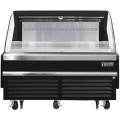 Horizontal Open Display Merchandiser, 60"W x 34-1/4"D x 41"H, 9.3 cu. ft. capacity, self-contained bottom mount refrigeration, front air intake & rear air discharge, LED lighting in canopy & underneath shelves, retractable night curtain, 2-tier stainless steel shelf riser, overheat protection alarm, stainless steel interior, black exterior, 5" front swivel casters with locks & leg stabilizers, R290 Hydrocarbon refrigerant, (2) 1/2 HP, 115v/60/1-ph, 10.0 amps, cord, NEMA 5-20P, ETL-Sanitation, cETLus, NSF