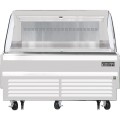 Horizontal Open Display Merchandiser, 60"W x 34-1/4"D x 41"H, 9.3 cu. ft. capacity, self-contained bottom mount refrigeration, front air intake & rear air discharge, LED lighting in canopy & underneath shelves, retractable night curtain, (2) adjustable stainless steel shelves, overheat protection alarm, stainless steel interior, white exterior, 5" front swivel casters with locks & leg stabilizers, R290 Hydrocarbon refrigerant, (2) 1/2 HP, 115v/60/1-ph, 11 amps, cord, NEMA 5-20P, ETL-Sanitation, cETLus, NSF