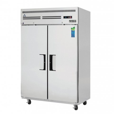 Reach-In Refrigerator, two-section, 49-5/8"W, 48.0 cu. ft. capacity, self-contained top mounted refrigeration, (2) solid hinged self-closing field reversible doors (locking), (6) epoxy coated wire shelves, height adjustable clips, digital controls with LED display, auto defrost, LED interior lighting, pressure relief port, stainless steel interior, stainless steel sides, galvanized steel top, bottom & rear, (4) 5" swivel casters (2 locking), R290 Hydrocarbon refrigerant, 1/4 HP, 115v/60/1-ph, 3.8 amps, cord, NEMA 5-15P, NSF, cETLus, ETL-Sanitation, ENERGY STAR®