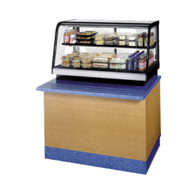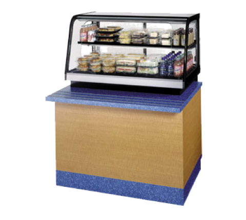 Counter Top Refrigerated Self-Serve Bottom Mount Merchandiser, 36"W x 29.7"D x 40.5”H, self-contained refrigeration with condensate evaporator, adjustable temperature control, tempered front glass with self-serve cut out, 3500K LED top light with lighted shelf, adjustable black metal shelf, removable black display deck, black painted metal & stainless construction with black trim, removable sliding glass rear doors, clear end panels, recessed 3” in the counter, cord & plug, cULus, UL EPH Classified, Made In USA, DOE 2017 compliant