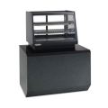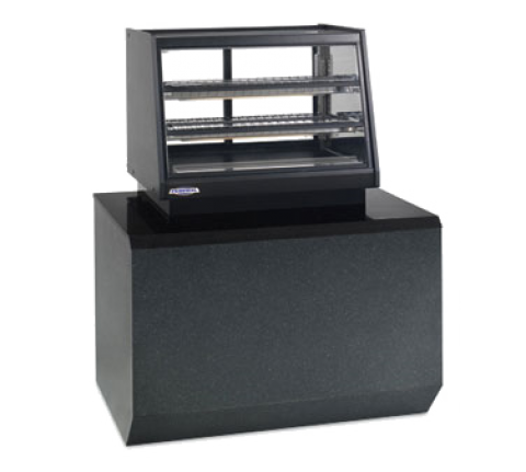Elements Countertop Self-Serve Refrigerated Rear Mount Merchandiser, 48"W x 29.4"D x 36.2”H, self-contained refrigeration with condensate evaporator, adjustable temperature control, (3) hinged lift-up front doors, 3500K LED top light & lighted shelves, (2) tiers of adjustable black wire shelves, black display deck, black trim, removable sliding glass rear doors, solid end panels, set directly on counter, 1/3 HP, 120v/60/1-ph electrical, cord & plug, cULus, UL EPH Classified, Made In USA, DOE 2017 Compliant