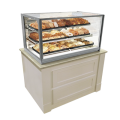 Italian Glass Non-Refrigerated Display Case, counter display model, 48"W x 30"D x 26"H, 2-tiers adjustable glass shelves, tempered tilt-out front straight glass, tempered glass top, ends & doors, removable sliding rear doors, 3500K LED top light & shelf lights, steel base construction, stainless steel interior, gray textured exterior, UL, UL EPH CLASSIFIED, Made in USA, DOE 2017 compliant