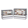 High Volume Refrigerated Bakery Case, 36-1/8"W x 35-5/16"D x 48”H, self-contained refrigeration with condensate evaporator, adjustable temperature control, sloped Thermopane tilt-front glass, LED top light &lighted shelves, (3) tiers of adjustable white wire shelves, glass sliding rear doors, white interior, tempered glass ends, choice of laminate with black trim, designed for continuous lineups, 1/3 HP, cULus, UL EPH Classified, Made In USA, DOE 2017 compliant