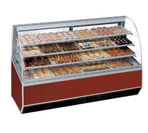 Series ’90 Non-Refrigerated Bakery Case, 59-1/4"W x 37-3/4"D x 48-1/2”H, tempered curved lift-up front glass, top light & shelf lights, heat reducing vent system, (3) tiers of adjustable white wire shelves, white interior, removable glass sliding rear doors sloped for easy product access, tempered glass ends, choice of laminate & trim, cULus, UL EPH Classified, Made In USA, DOE 2017 compliant
