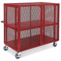 Security Cart, 60"W x 30"D x 58"H, (1) intermediate shelf, (2) 6" rigid casters, (2) 6" swivel lockable casters with brake, welded, steel, red