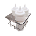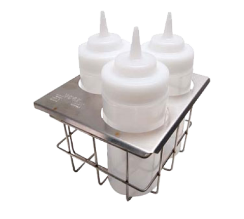 Server #86831 SBH-3 Squeeze Bottle Holder, triple unit, 8-1/8" H x 6-7/16"W x 7-1/16"D, includes (3) 16 oz. squeeze bottles, stainless steel with brushed (#4) finish