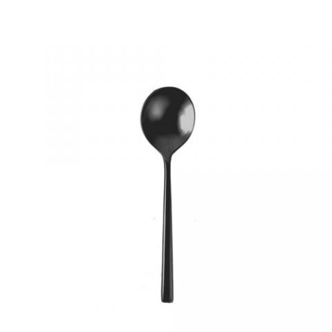 Arezzo Bouillon Spoon, 6" (15cm), brushed, dishwasher safe, 18/10 stainless steel, black (0.11 each weight) (Per case = 12 each) (ecomm dealers 2 case increments)