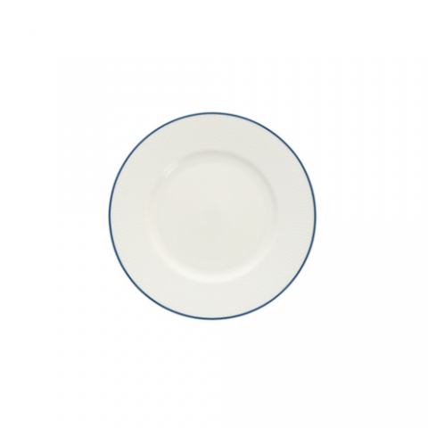 Amanda Salad Plate, 8.5" (22cm), embossed, dishwasher safe, microwave safe, oven safe up to 400°F, vitrified China, white with blue end at edges (0.33 each weight) (Per case = 24 each)
