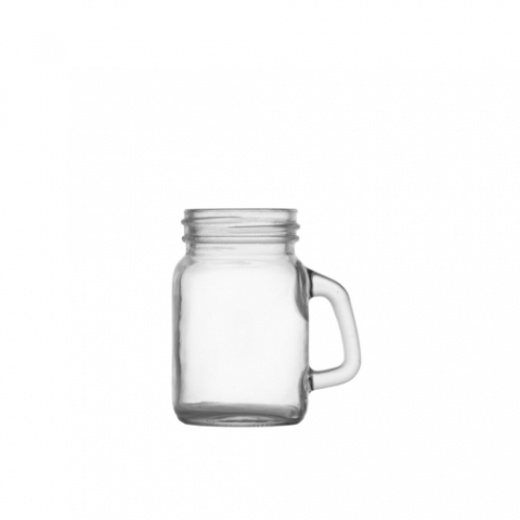 Mason Jar with handle, 4.5 oz., (.13L) H 3.5" (8.5cm), (0.27 each weight) (Per case= 72 each)