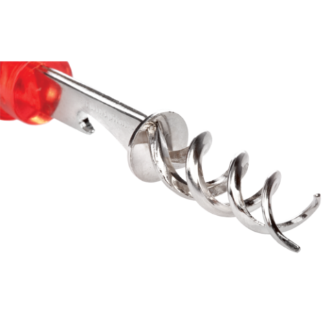 Twin Spiral™ Corkscrew, 4-5/8" closed, triangular double spiral, foil cutter, bottle cap opener, translucent, orange, Made in Italy (retail box)
