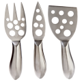 Cheese Tool Set, small, 5-1/4" long each, stainless steel, includes: (1) medium-hard cheese knife, (1) hard cheese knife, (1) cheese fork, with clear plastic box, perforated (factory box)