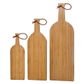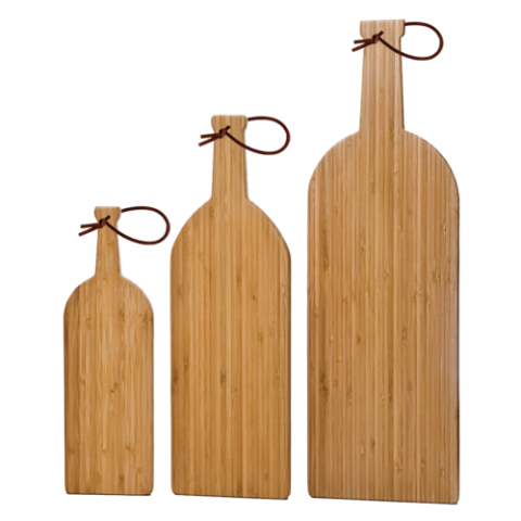 Cutting Board, medium, 17-1/2"W x 5-5/8"D x 5/8"H, wine bottle shape, leather strap, bamboo (bulk pack)