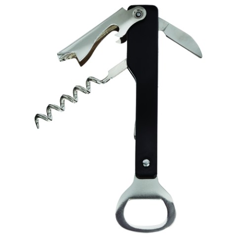 Wine Steward's Corkscrew, 5-7/8" overall length, European style spiral, straight blade, deluxe bottle cap opener built into handle, Made in China (bulk pack)
