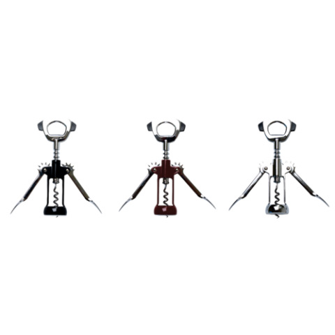 Ultimo™ Wing Corkscrew, 7-1/4" overall length, open spiral, with bottle cap opener, foil cutter, chrome plated, enameled exterior, Made in Italy (carded)