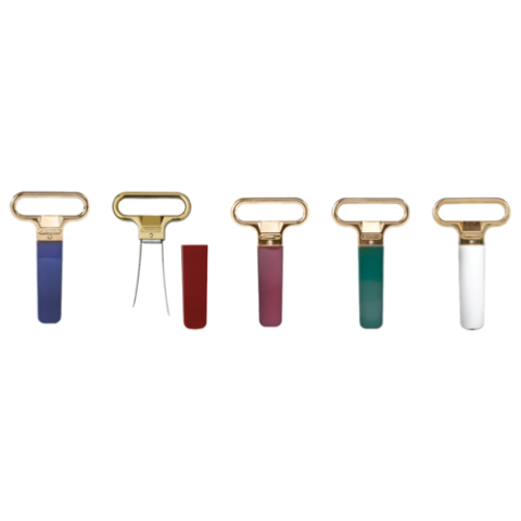 Ahh Super!™ Cork Extractor, 2-prong, 4-3/8" overall length, brass plated, includes: ABS plastic sheath, Made in Italy (carded)