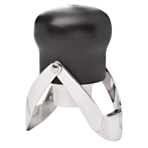Bouchon Champagne Bottle Stopper, 1-1/2" dia. x 1-3/4"H, round, snap-down style, ABS plastic, metal, black (factory box)