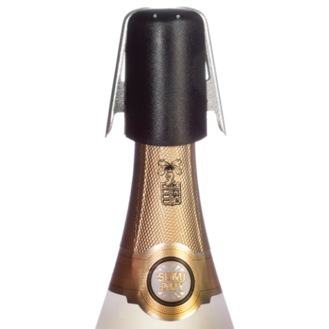 Champagne Combo Opener/Stopper, 2-3/4" overall length, two spring loaded handles, 12 claws, rubber stopper, black (bulk pack)