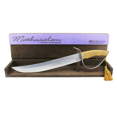 Mathusalem Champagne Saber, 18-1/2” OAL, unsharpened, high carbon stainless steel, Olivewood Handle