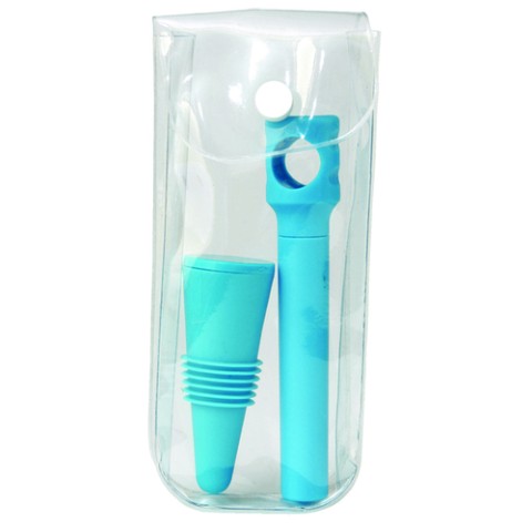 Wine Kit, includes: (1) corkscrew- 4-1/4" overall length, spiral, bottle cap opener, protective sheath comes off to form cross bar, ABS plastic (3008), (1) bottle stopper (8165), (1) storage bag (premium carded)