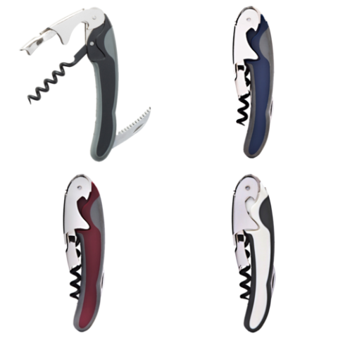 Corkscrew, two-step, 4-5/8" overall length, non-stick spiral, with blade, Italian-designed, gray rubber trim exterior handle (bulk pack)