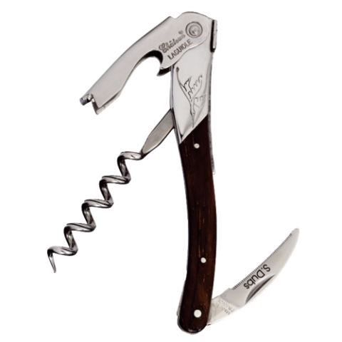 Chateau Laguiole® Waiter's Corkscrew, 4-1/2"L, spiral, serrated blade, palissander wood handle, includes: leather pouch, (Serge Dubs) (factory box)