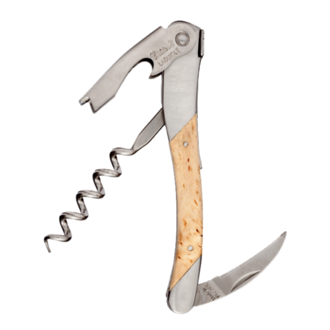 Chateau Laguiole® Waiter's Corkscrew, 4-1/2"L, spiral, serrated blade, Finnish birch wood handle, includes: leather pouch, Made in France (factory box)