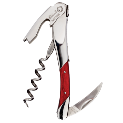 Chateau Laguiole® Waiter's Corkscrew, 4-1/2"L, spiral, serrated blade, red stamina wood handle, includes: leather pouch, (Gerard Basset) (factory box)