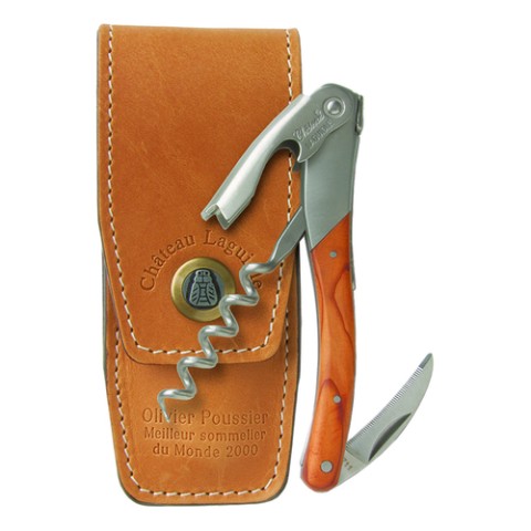Chateau Laguiole® Waiter's Corkscrew, 4-1/2"L, spiral, serrated blade, yew tree wood handle, includes: leather pouch, Limited Edition (Olivier Poussier) (factory box)