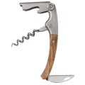 Clos Laguiole Waiter's Corkscrew, 5" overall length, elongated conical spiral, serrated blade, finger nail grip, bottle cap opener, (2) adjustable axis connections, juniper wood handle, includes: two-sided wrench, black leather sheath & box, Made in France (factory box)