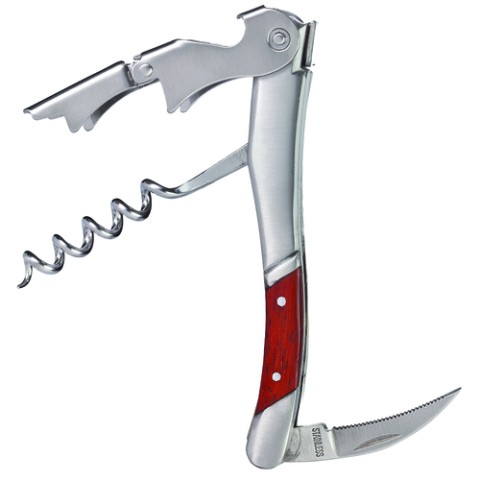 Bellini Waiter's Corkscrew, 4-1/2" overall length, spiral, fine serrated blade, rosewood inset handle, double lever, polished stainless steel (premium carded)