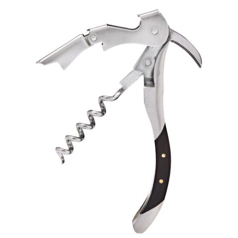 Donatello Waiter's Corkscrew, 4-3/4" overall length, curved, spiral, serrated blade, ebony wood inset handle, stainless steel (factory box)