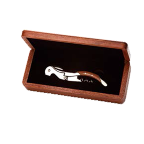 Donatello Waiter's Corkscrew Set, includes: (1) corkscrew- 4-3/4" over all length, spiral, serrated blade, double lever system, rosewood insert handle, stainless steel, satin finish, (1) box- 10-1/2" x 7-3/8" x 3", rectangular, wood, dark sapele (factory box)