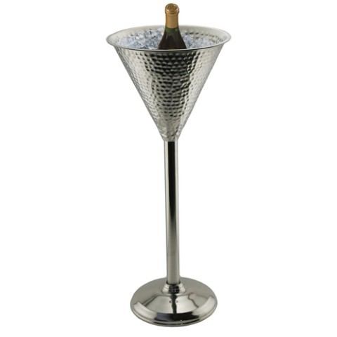 Kone Cooler Bucket, 10-3/4” dia. x 26-7/8”H, single-bottle, stand with weighted base, stainless steel, hammered bucket