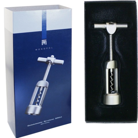 Monopol® Bell Corkscrew, 6"H, zinc die cast & steel, satin finished, Barolo, Made in Germany