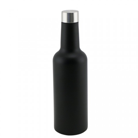 Apollo Bev-Ware™ Half-Bottle Wine Bottle Flask, 13 oz., 2-1/2" dia. x 9-1/2"H, triple-wall, vacuum sealed, temperature holding: cold for up to 25 hours & hot for up to 12 hours, screw-top, 18/8 stainless steel, black textured finish, BPA free