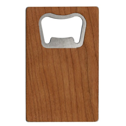 Credit Card Opener, 3-1/2” x 2-1/8”, 2mm thick, stainless steel, cherry wood laminated