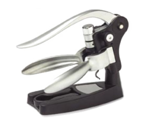 De-Corker Set, includes: (1) 7-1/2" x 6" de-corker, (1) foil cutter, (1) table stand, (1) replacement spiral, die cast handles, Made in Italy (retail box)