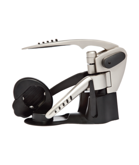 SwiftPull® Pro2 Wine Bottle Uncorking System, 7-3/4" x 2-/2" x 5-1/4"H, includes: uncorker, foil remover (7452) and table base, replacement Helix spiral, metal handles lined with perforated rubber, alloy rack & pinions, ABS plastic base (retail box)