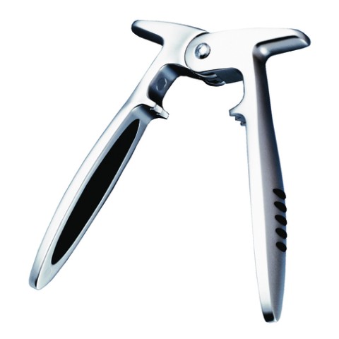 SwiftTurn™ Champagne Opener, 4-1/2" overall length, rubber perforations through the handle, non-slip grip, satin nickel finish, silver (premium carded)