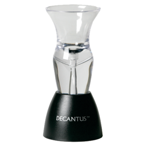 Decantus™ To Go Wine Aerator Set, includes: (1) 5" H slim aerator, (1) plastic table stand, (1) black storage pouch (retail box)