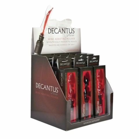 Decantus™ Aero Wine Aerator Pourer Display Set, includes: (12) clear pourers (7716), cardboard display with plastic tray (retail box)