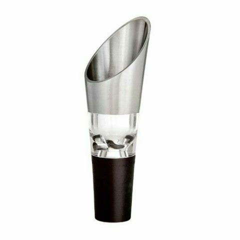Premium Decanter Pourer, 3-3/4" long, narrow neck (venturi pipe), stainless screen, stainless steel, silver (retail box)