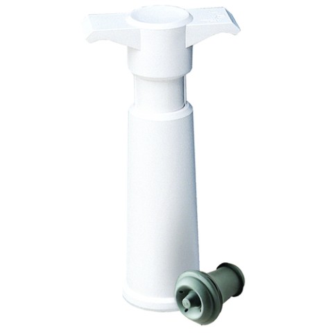 VacuVin® Vacuum Wine Preservation, includes: (1) 5" x 2-7/8" white pump, (1) 1-3/4" long gray stopper (carded)